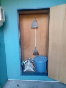 (玄関前の物置)※掃除用具やポリバケツ 等々